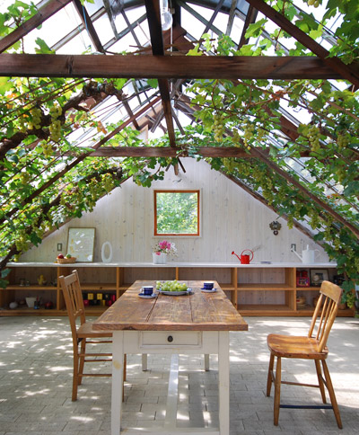 the project sits like a ring placed over the terrain, with its funnel-like roof forming a shaded perimeter walkway and an introverted core.
