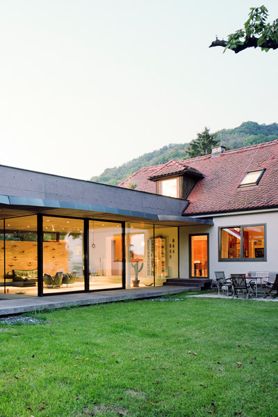 the project sits like a ring placed over the terrain, with its funnel-like roof forming a shaded perimeter walkway and an introverted core.