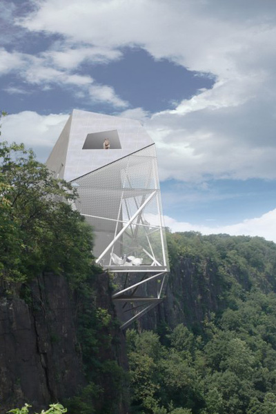 the west side of the lower hudson river, the crystalline shaped dwelling provides
