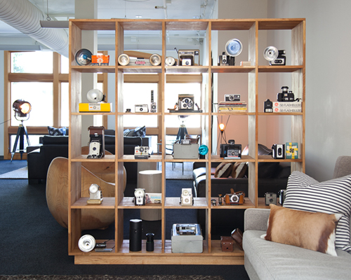 located in the south park neighborhood of san francisco, instagram’s offices have been developed by local office geremia design. influenced by the social media company’s branding, the design team have brought together a collection of retro furnishings establishing a relaxed office environment. flooded with natural light, the space provides a welcoming and intimate setting: natural materials such as wood and leather are complimented and offset by the use of reflective metallic surfaces. a collection of vintage cameras has been curated forming the focal point of the project, emphasizing the tech company’s ethos and brand language. to further accentuate the collaborative spirit of the organization, a series of communal meeting points are dispersed throughout the internal fabric of the plan.