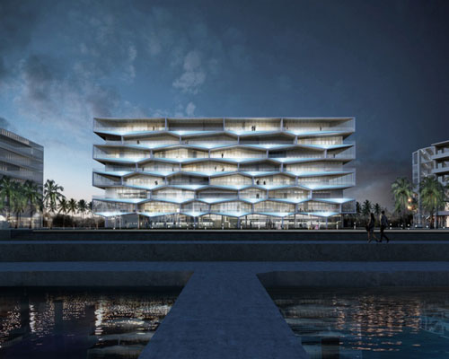 bjarke ingels group (BIG) has revealed images of ‘the honeycomb’, a design which will form the centerpiece of a new bahamian leisure resort. the proposed development also incorporates a public plaza connecting the 16,000 square meter building with the adjacent harbor. standing as the tallest structure in the region, ‘the honeycomb’ will stand as a beacon for the resort. the project is an ongoing collaboration with local office HKS architects and michael diggiss architects.