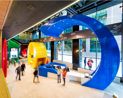 ‘google docks’ consists of fourteen individually-themed floors of creative work environments