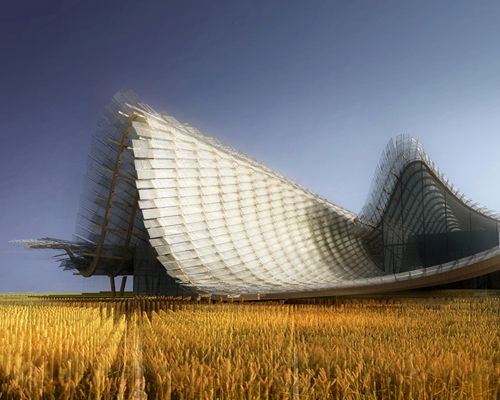 tsinghua university in collaboration with new york-based design firm studio link-arc have conceived ‘the china pavilion’ for the milan expo 2015 as a field of different spaces. hovering over the ‘field of hope’ on the ground floor, a floating cloud structure offers a distinctive undulating roof and shelters the cultural and exhibition programs beneath.