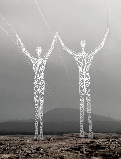 american firm choi + shine architects recently received the 2010 boston society of architects award for unbuilt architecture for their project ‘the land of giants’, which they originally designed for the icelandic high voltage electrical pylon competition back in 2008.