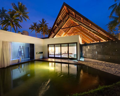 the project sits like a ring placed over the terrain, with its funnel-like roof forming a shaded perimeter walkway and an introverted core.