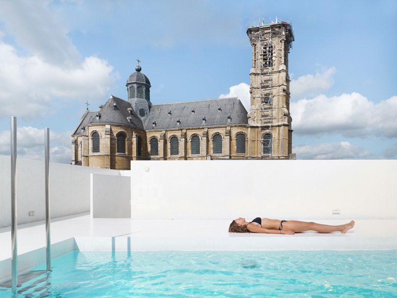 the pool creates a landscape of escape among the flemish brick city