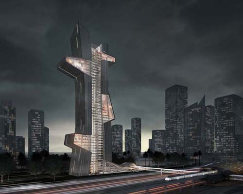 the tower integrates the idea of a ‘pin-up’ space into its form