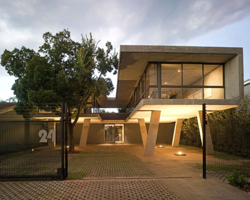 nestled amongst a mixture of residential and small business properties, the ‘floating in space’ project by johan wentzel and grete van as of W design architecture studio was designed to fit into its ever-changing context. located in the east of pretoria in south africa, the adaptable building can be used as a house, an office or a combination of the two.