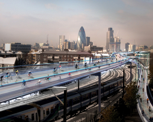 SkyCycle: elevated bike network in london by foster + partners, exterior architecture and space syntax