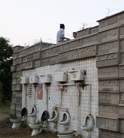 rundown urinals reminiscent of the poor sanitary condition of the kowloon walled city