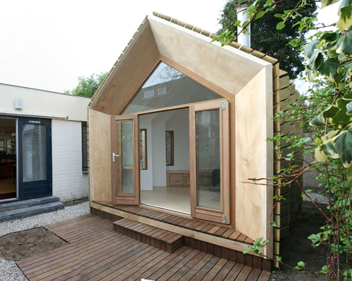 another addition to the ‘hermit houses’ series, the ‘lou’ – named after the famous writer and psychoanalyst salomé – serves as a place for contemplation and therapeutic sessions. the mass produced retreats conceived by daniël venneman and mark van der net of the cloud collective offer customized designs within a range of settings and contexts. located just outside its main building, this example is orientated towards the garden, creating a secluded world of its own.