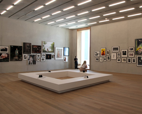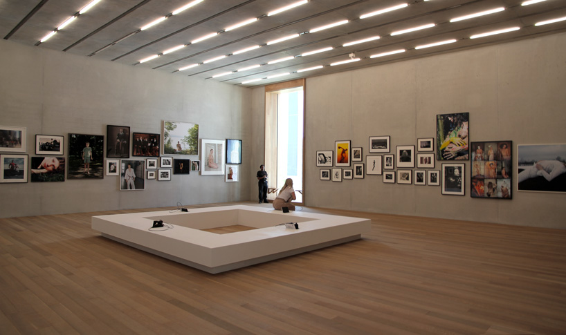 the project sits like a ring placed over the terrain, with its funnel-like roof forming a shaded perimeter walkway and an introverted core.