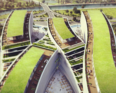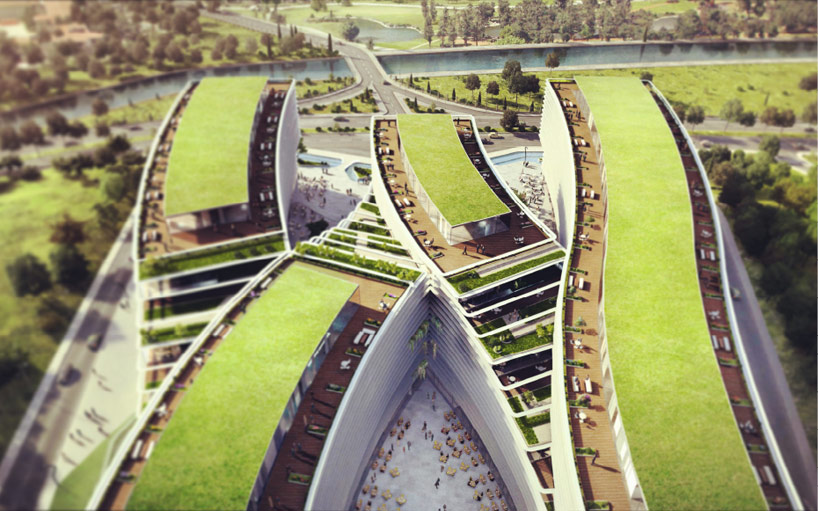 a continuation of the existing rock formations, the hotel is articulated as a series of stepped horizontal planes, courtyards, and gardens.