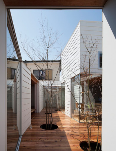 (left) central courtyard and trees (right) dining area images © hiroshi ueda