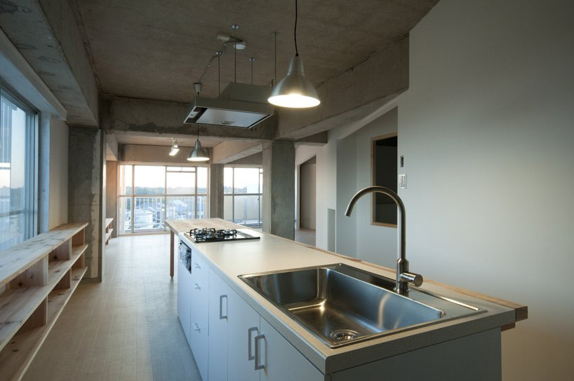 kurosawa kawaraten‘s ‘apartment for TK’ is a renovation project for a couple who was given a 40-year old apartment from the husband’s grandfather. ‘we thought of how this family could spend their daily life in the building with respect to the past generation,’ kawaraten says.