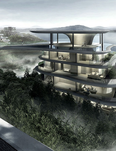 chinese practice MAD architects has just released plans for the ‘huangshan mountain village’ in the yellow mountains of central china. being a place of natural beauty and its fair share of mystery, the residential complex aims to give the user a quiet peaceful place where they may not only view the landscape but somehow reflect upon it and introspect in the recently declared world heritage site. the complex, a series of stacked planes molded with rounded edges, mirrors the surrounding topography to become an almost indiscernible mesh between the natural and the man-made.