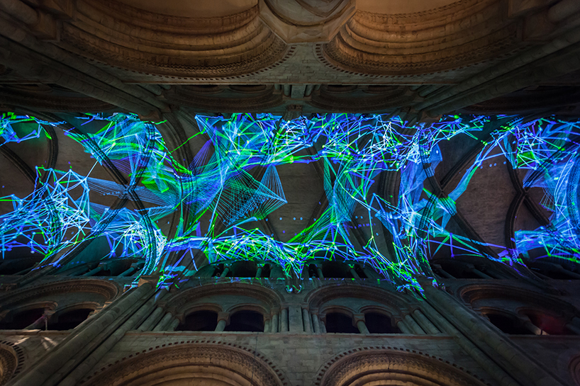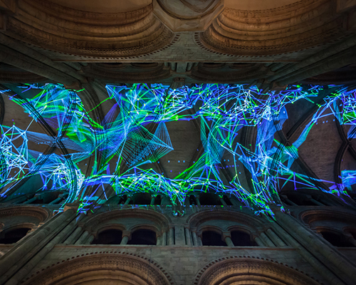 miguel chevalier weaves + projects complex meshes of light to durham cathedral