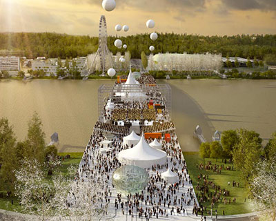 landscaping leading up to the bridge