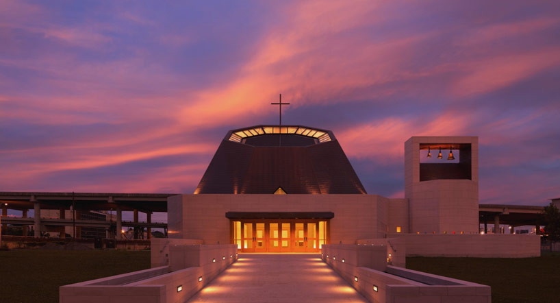 interior views of the non-hierarchical altar space below the dome’s aperture