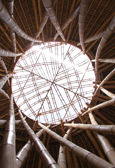 bamboo constitutes structural elements as well as partitions, seats and tables