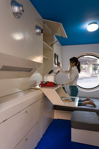 nakagin capsule tower building (1972) by kurokawa kisho on display at the mori art museum