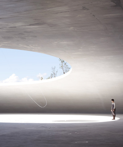 teshima art museum‘ by tokyo-based architect ryue nishizawa and japanese artist rei naito recently welcomed visitors of the 2010 setouchi international art festival held on seven islands in the takamatsu port area, japan. hugging a hilly site on the island of teshima, the museum resembles a droplet of water caught in the middle of gliding across the land.