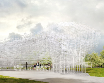 made up of a regular 3D grid of slender metal tubes creates varying levels of transparencyimage © sou fujimoto