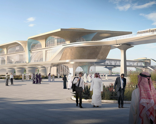 the celebration of arriving and departing has always been found in the design of stations, explained ben van berkel, co-founder of UNStudio. ‘for the QIRP we devised an adaptive parametric system which creates open, light and welcoming interiors for each of the individual stations. traditional qatari architectural features are reinterpreted to incorporate new, transformative qualities which capture daylight and direct this into the interiors, creating uplifting and luminous atmospheres.