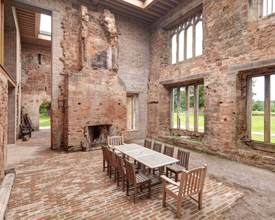 astley castle originally served as the royal family’s fortified manor for three generations before being turned into a hotel during the second world war. after years of abandon, it became a ruined curiosity for those who knew of its location until the landmark trust – a building preservation charity – proposed to restore the structure. a competition took place for which architects were invited to submit proposals for the renovation of the residence and surrounding gardens.