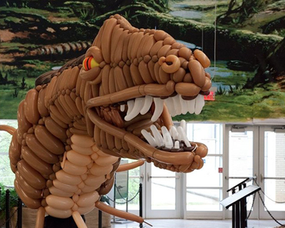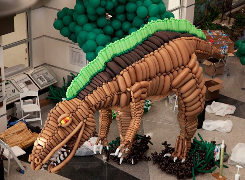 this is the first time the airgami team has built a dinosaur next to the skeleton of an actual one