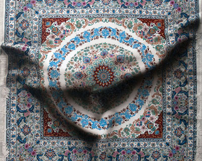 spanish artist antonio santin‘s hyper-realistic paintings depict haunting imagery of human bodies hidden under highly ornamented tapestries. the almost tactile figures are carved through chiaroscuro, and the resulting forms appear to physically respond to the silken textiles and materials. the concealed silhouettes protrude from beneath the detailed, intricate fibers that surface the decorated carpets, revealing eerie compositions that both attract and unsettle the audience. the still-life images originate from his own composed photographs, which he projects onto a wall and manipulates their size and proportion. santin is currently exhibiting at marc straus gallery, new york.