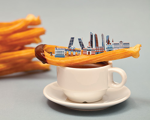 illustrator bea crespo and photographer andrea g.portoles team up in the creation of an ongoing photographic series called ‘brunch city‘. using food as an artistic medium, the duo use everything from bread crust to yogurt cups to display architectural landscapes and scenes relevant to the city’s character and quality. gaudi’s famed cathedral is cut from paper and placed atop a slice of catalan tomato bread, typical to the region; rome’s colosseum is set atop a towering stack of gelato; landmark structures found in paris are placed into a golden-brown croissant. the collection fuses together photography, travel, crafts and cuisine by reminding city inhabitants of the overlooked cultural connection between their urban surroundings and the food that defines it.