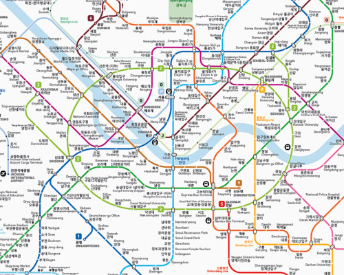 french serbian architect jug cerovic has standardized international subway maps with INAT, a guideline developed to unify the global metro network with easy to read and memorize charts. each city’s center is enlarged, to make room for the multiplicity of lines and connecting stations. a standard set of symbols is applied to each map including the line colors, stations, connections and station labeling. angles are gently curved for a smooth familiar look and linear paths are represented vertically, horizontally, or 45, with no more than 5 bends on their entire length. highly representative shapes are used for specific ubran features: a ring for moscow and paris, a rectangle for beijing and shanghai, a stadium shape for berlin and seoul, a parallelogram for london, and regularly spaced parallel lines for gridded street patterns like new york and mexico. all text is labelled in both local and latin characters and are legible on small sized prints for pocket use and suitable for display on a wide array of supports.