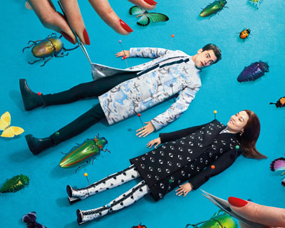 TOILETPAPER magazine (maurizio cattelan, pierpaolo ferrari and micol talso) is responsible for KENZO‘s FW13 campaign. selected by business of fashion as the best ads of the season, TOILETPAPERS’s creative direction sees american model sean o’pry and academy award-nominated japanese actress rinko kikuchi starring in a series of ‘technicolour, popart and surrealism-influenced’ conditions to promote the new collection by the  international brand which was founded by japanese designer kenzo takada and has since seen carol lim and and humberto leon take over its creative direction since 2011. for the paris-based fashion house, TOILETPAPER ideated visuals where o’pry and kikuchi are depicted in contradicting situations, while still expressing KENZO’s love for travel, art, culture and of course fashion–breaking away from the expected joys of living with exciting influences.