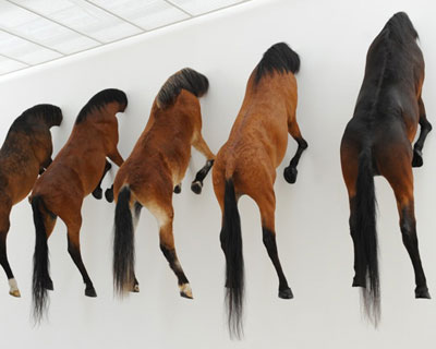 maurizio cattelan's 5 horses at fondation beyeler