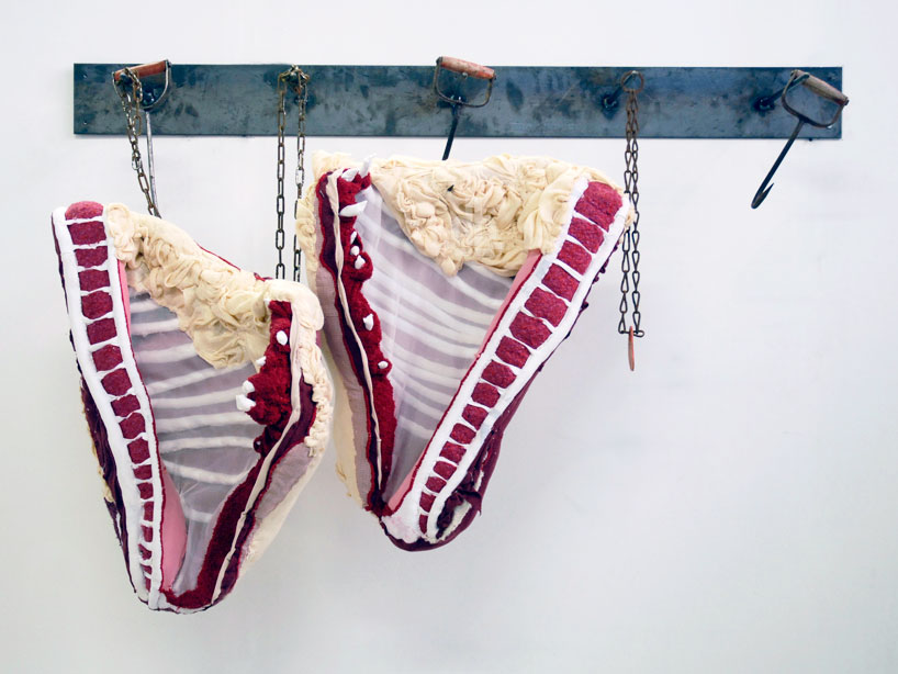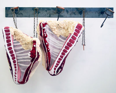 ‘abnegation’2007articles of clothing belonging to the artist, embroidery floss, batting, armature wire, meat hook53 1/2 x 49 x 27 in.