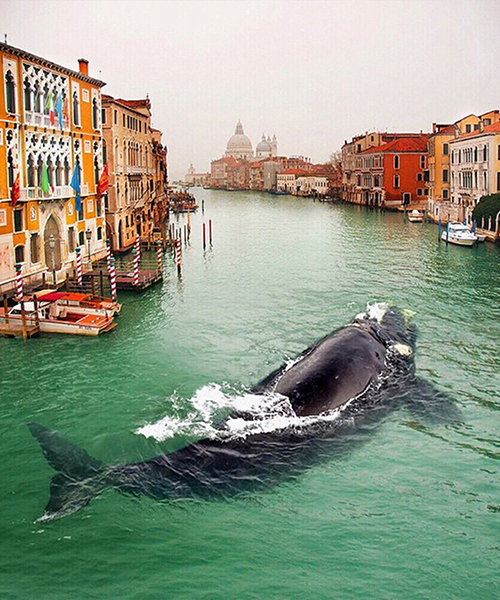 when robert jahns isn’t traveling around the globe photographing an exotic mangrove forest in koh yao noi or sitting on a skyscraper’s edge in new york, he’s behind the computer, carefully crafting otherworldly landscapes that could only exist in our wildest dreams. the hamburg-based digital artist is best known as nois7, an instagram phenomenon whose collaged compositions of surreal cityscapes and hypnagogic natural panoramas have amassed more than 800,000 loyal fans. a seamless blend of reality and fantasy forms awe-inspiring and amusing scenes, like a whale swimming through the canals of venice, or an elephant weightlessly lifted on a bundle of colorful balloons.