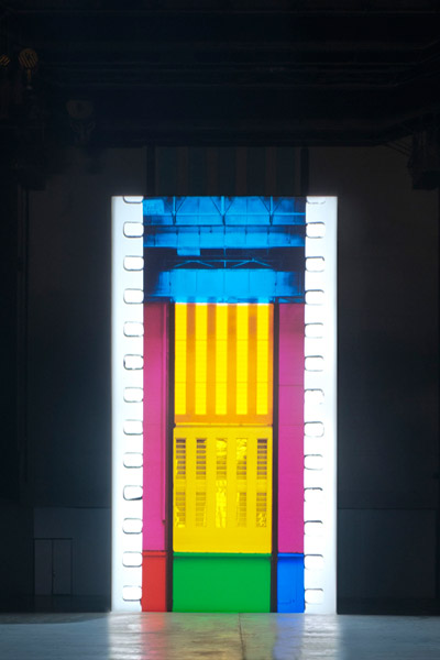 the work, consisting of cut film features a varied combination of both natural and manufacturedshapes and color
