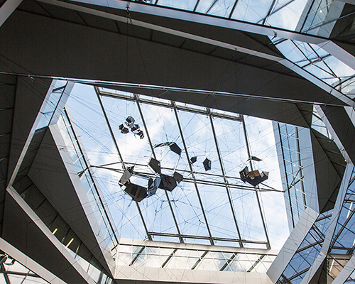 the works are staged within mangroves, tidal waterways, and open sky, allowing technology and environment to operate as a single system.