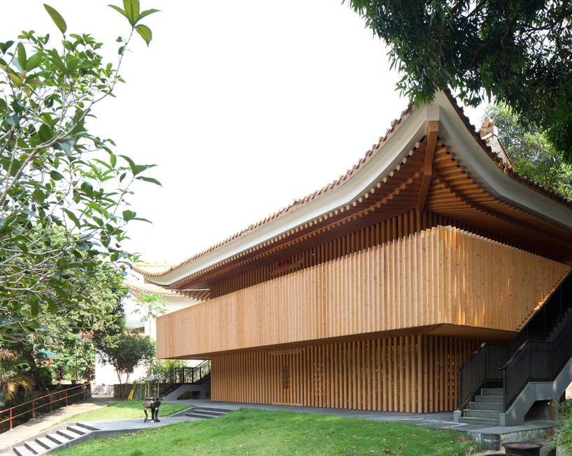 the ‘timber tale – an ancestor hall’ by eureka limited was born out of understanding the subtle differentiation between inside and outside, as well as the basic forms of square and circles in traditional chinese architecture. this is expressed in the rhythmic expression of the solid pine and transparent glass in the facade, and the gradual morphing from straight to circular in the timber ceiling.