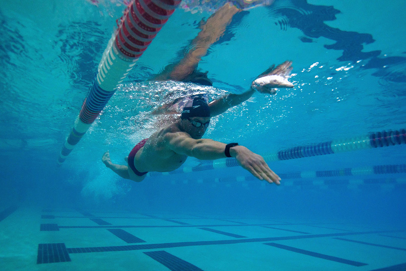 (first image) olympic swimmer ryan lochte wearing WHOOP during a training session in the pool