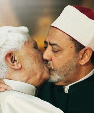 ad featuring pope bendetto XVI with ahmed el tayyeb, imam of al-azhar mosque in cairo