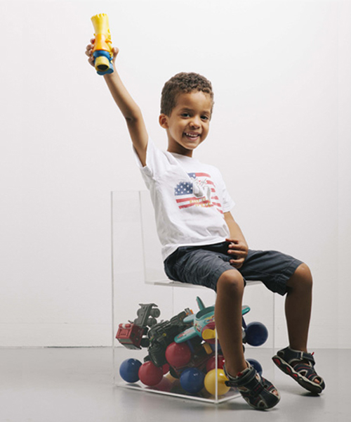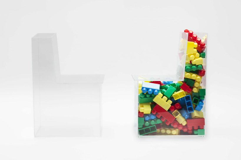 italian designer carlo contin has designed a chair that encourages children to keep their toys in order, by giving it a container characteristic. called ‘mom’, the piece is made of transparent acrylic and has an opening on the top for children to fill the empty space with their favorite games once they are finished playing. the seat can be lifted for even easier insertion or removal of the objects, becoming a game itself.