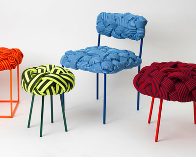 the cloud collection by brazilian designer humberto da mata is built around the weft technique whereby a set of lines are interwoven creating a new visual presence and tactile experience. the idea emerged from the very pattern of the fabric- how to rebuild a striped fabric in a new three-dimensional way? the same technique is used in many objects such as baskets and natural fibers but usually follows an orthogonal grid. the cloud collection instead interweaves on an irregular path, making a more interesting and unique pattern emphasized by the pinstripe print on the fabric. each piece is handmade and completely original.
