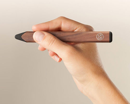 fiftythree, the company behind the ‘paper’ app, has translated their digital creativity platforms as tangible pieces of hardware with the release of ‘pencil’, a wooden stylus suited for iPad models. its form and material is crafted from sustainably harvested wood, influenced by the traditional carpenter pencil, but harbors a technological core. pencil’s battery charges with a USB port in under 90 minutes, powering for up to one month on a single charge. by connecting via bluetooth — without the responsibility of pairing with a settings menu — users are able to easily and quickly create. adaptive palm rejection instantly recognizes whether a hand or pencil is touching the page, carefully tuned for optimal interface awareness. the two new models are available in walnut and graphite brushed aluminum, and retail for USD 59.95 and 49.95, respectively.