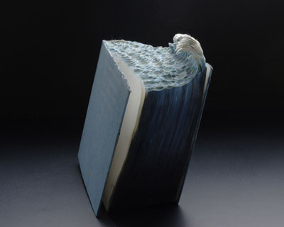 mountains by guy laramee – carved books, inks, ribbon, altered book. 28 x 17 x 25 cm2011