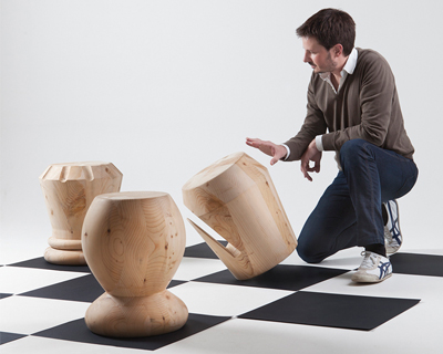 playfully interpreting traditional chess pieces into a series of stools, italian designer giorgio bonaguro has created this collection for icons furniture. the ‘bishop’ is represented in the shape of the ‘alfiere’, which is made from solid wood and features a geometric form, interrupted by a large diagonal cut that serves as a magazine rack. evoking a more aristocratic and imposing shape, the moving ‘queen’ becomes the ‘regina’ and the ‘pawn’ in contrast is now the ‘pedone’, defined by a rounded simple stool. wanting to emphasize the typical characteristics of the chess pieces, the heads have been especially crafted to emulate their original form. the collection is produced by icons and is constructed from solid scented cedarwood with semi-artisanal techniques and processes, enhancing their quality and finishes.