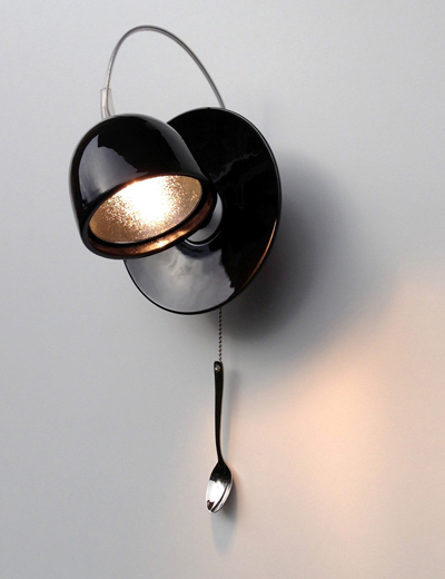 a saucer acts as the wall mounting component, while the cup is the lamp shade