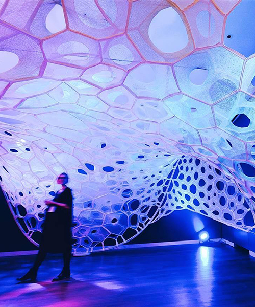 the installation’s architectural framework is inspired by nature and mathematics