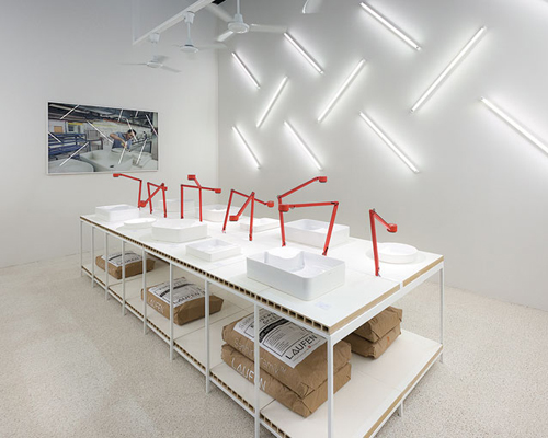 grcic’s partnership with LAUFEN will see his work with the company unfold in two parts. the initial wash basin prototypes – one being rectilinear, the other being a mixture of circular and rectangular, and trays – were presented by LAUFEN on the occasion of the 2014 salone del mobile. together, over the course of the coming year, they will continue to develop these concepts into a comprehensive range of bathroom ceramic products at the ISH frankfurt sanitaryware fair in 2015.